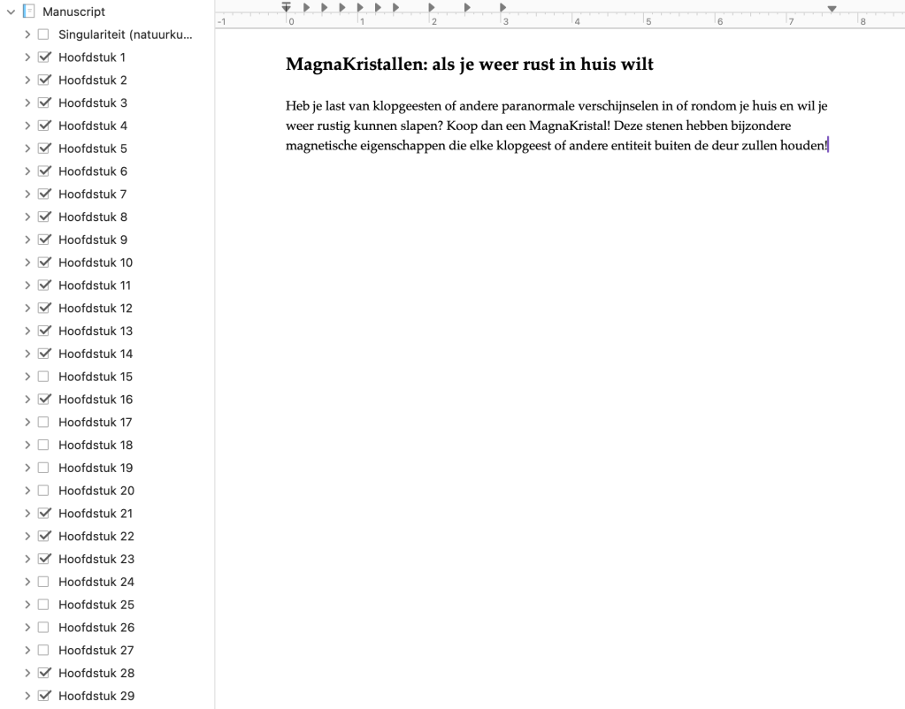 In de kerstvakantie ben ik enorm opgeschoten met de herziene versie van Singulariteit. Sindsdien staat het schrijven helaas weer op een lager pitje. Desondanks komt het einde nu toch echt in zicht! Er zijn nog maar een paar hoofdstukken over waar een klein stukje aan het begin toegevoegd moet worden en een paar ‘gewone’ scènes en dan is deze versie compleet. De hoofdstukintro’s bestaan uit bijvoorbeeld ‘nieuws’berichten, beschrijvingen van video’s, of flauwe reclames zoals die hieronder.